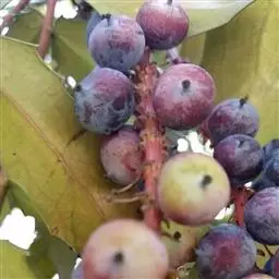 浆果球形或阔椭圆形,暗紫黑色,被白粉。种子红褐色,无假种皮。x=6。