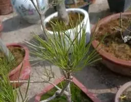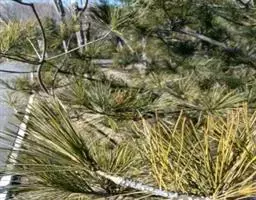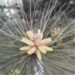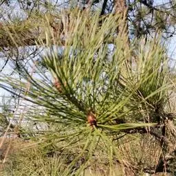 针叶2针一束,稍硬直,长5-13厘米,多为7-10厘米,边缘有细锯齿,两面有气孔线;横切面半圆形,单层皮下层细胞,稀出现1-3个细胞宽的第二层,树脂道3-7 (-9)个,中生,叶鞘初呈淡褐色或褐色,后呈暗褐色或暗灰褐色,宿存。雄球花圆柱形,淡红褐色,长1-1.5厘米,聚生于新枝下部成短穗状。