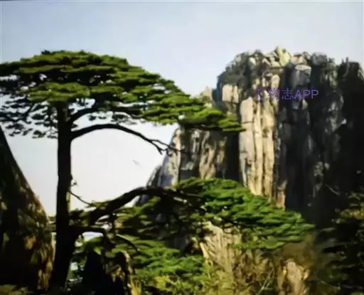 迎客松:黄山奇松之首。长在玉屏峰东侧、文殊洞之上。地处海拔1680米,树高10.1米,树龄约800多年。