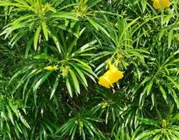 羊角拗,学名:Strophanthus divaricatus (Lour.) Hook. et Arn.,别名:阳角右藤、牛角橹、断肠草、羊角藤、大羊角扭蔃(广西);鲤鱼橄榄(厦门);羊角黎;黄葛扭;猪屎壳。是华南山坡常见的野生灌木,叶长矩圆形,全缘,聚伞花序顶生,花冠漏斗状,裂片延伸成长线状,黄色。全株有剧毒,中毒症状为心跳紊乱,呕吐腹泻,神经性失语,幻觉,神志迷乱。有毒成分为羊角拗甙,毒毛旋花甙等。产于贵州、云南、广西、广东和福建等省区。野生于丘陵山地、路旁疏林中或山坡灌木丛中。越南、老挝也有分布。