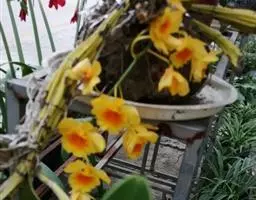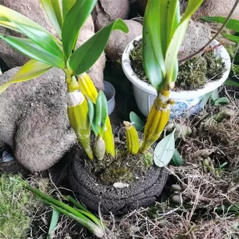 通常选用四壁多孔的塑料或陶瓷花盆,用碳根、泥炭藓、树皮块、木炭块等作盆栽材料。根据兰苗的大小,选择不同规格的花盆,但不宜用大盆栽小苗口上述栽好材料在使用前必需在清水中浸泡1天以上备用。盆底要多垫大瓦片或碎砖块,深度至盆底约1/3处,然后将兰苗放于盆中央,并在一旁插一细竹竿以固定兰苗,再填入其他栽培材料,注意根与根之间用材料隔开。
