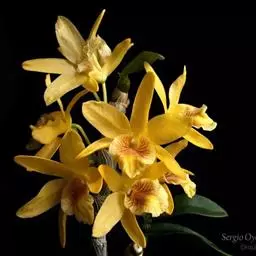 独角石斛,Dendrobium unicum,兰科石斛属植物。花瓣橙黄色,唇瓣反转似犀牛角,…