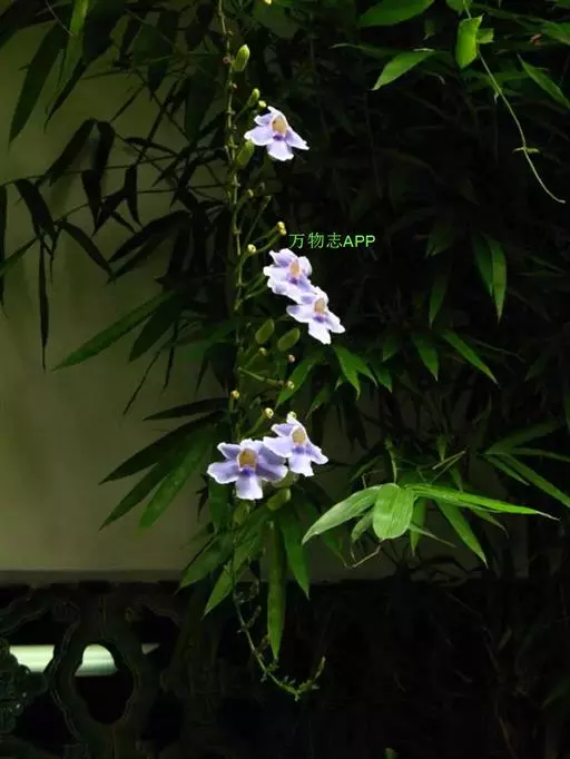 爵床科山牵牛属多年生常绿灌木,植株高2-3米,分枝多,枝条较柔软,幼茎四棱形,绿色至深褐色。蓝吊钟…