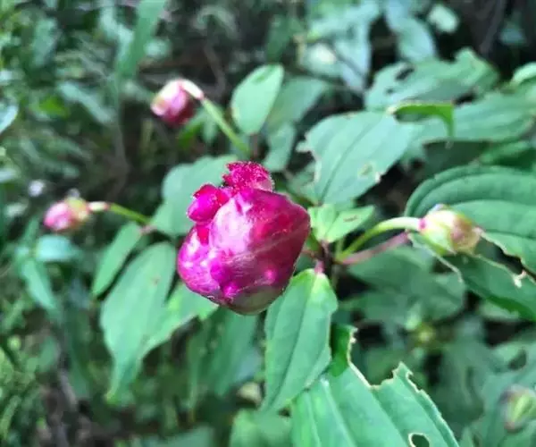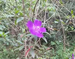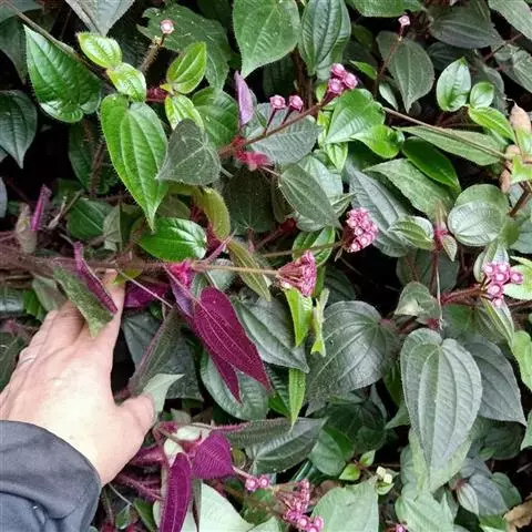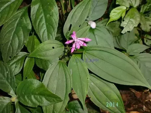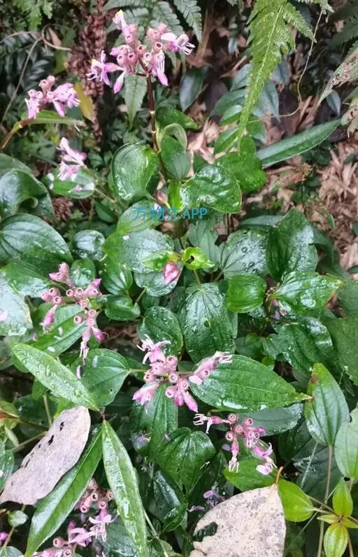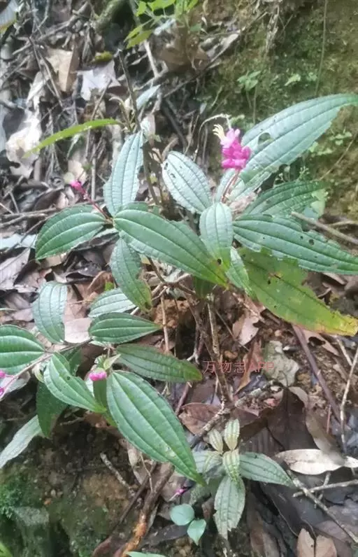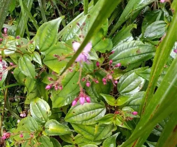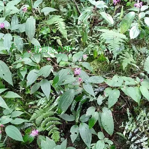 异药花(Fordiophyton faberi Stapf)别称:酸猴儿、臭骨草、伏毛肥肉草、峨眉异药花,野牡丹科野海棠属草本或亚灌木,高30-80厘米;茎四棱形,有槽,无毛,不分枝。叶片膜质,通常在一个节上的叶,大小差别较大,广披针形至卵形,稀披针形,顶端渐尖,基部浅心形,稀近楔形,侧脉不明显,背面几无毛或被极不明显的微柔毛及白色小腺点,基出,脉明显,隆起,侧脉及细脉不明显;宿存萼与蒴果同形,具不明显的8条纵肋,无毛,膜质冠伸出萼外,4裂。花期8-9月,果期约6月。