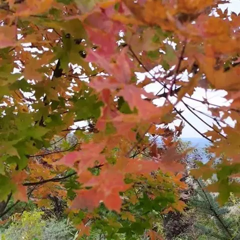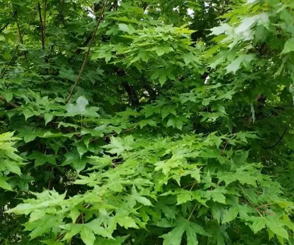 枫树为高大乔木,可高达29米以上,冠幅可达16米。花期4到5月,果期9到10月。随着树龄增长,树冠逐渐敞开,呈圆形。枝条棕红色到棕色,有小孔,冬季枝条是黑棕色或灰色。枫叶色泽绚烂、形态别致优美,可制作书签、标本等。在秋天则变成火红色,落在地上时变成深红。