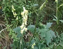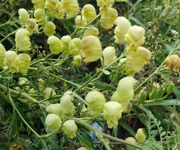 如果种植密度很大,在雨季、空气湿度大,容易发生斑枯病。此病危害叶片,导致植株提前死亡。严重影响块根和种子产量,所以应在雨季病害发生前,按说明喷洒速克灵或代森锰锌3—4次,每次间隔10天左右,可防治病害发生。 黄花乌头三年生植株比较高大,可达1—1.5米,而且穗状花序十分巨大,植株首先从基部开始木质化,遇大风或降雨极易倒伏折断,给生产造成损失。为了减小损失,栽培上可在床间或每隔3根垅种植一行玉米,可减轻大风危害,防止倒伏。