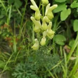 黄花乌头(学名:Aconitum coreanum(H. Lév.) Rapaics)块根倒卵球形或纺锤形,不分枝或分枝。叶片宽菱状卵形,顶生总状花序短,有2-7花,萼片淡黄色,花瓣无毛,爪细,瓣片狭长,花丝全缘,种子长约椭圆形,具三条纵稜,8-9月开花。生海拔200-900米间山地草坡或疏林中。分布于中国、朝鲜、俄罗斯远东地区。