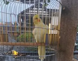 黄化鸡尾鹦鹉:始于1958年美国的弗罗里达州,黄化种是由于黑色素的缺乏,导致它们身体羽为白色,头具淡黄色羽冠,嘴为象牙白色。头部、脸颊、下颌至上喉部均为淡黄色,脸颊具橘黄色圆形块斑。跗跖、脚为肉粉色。