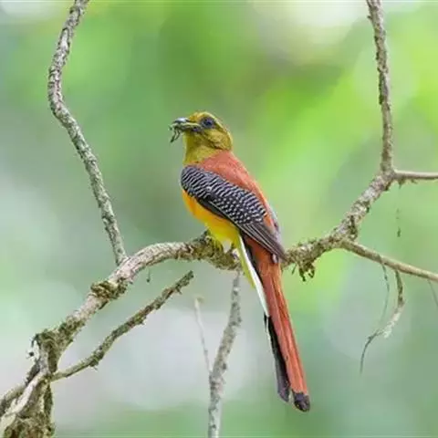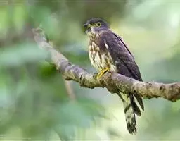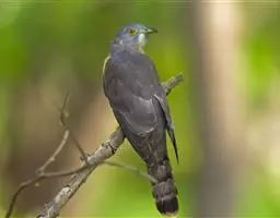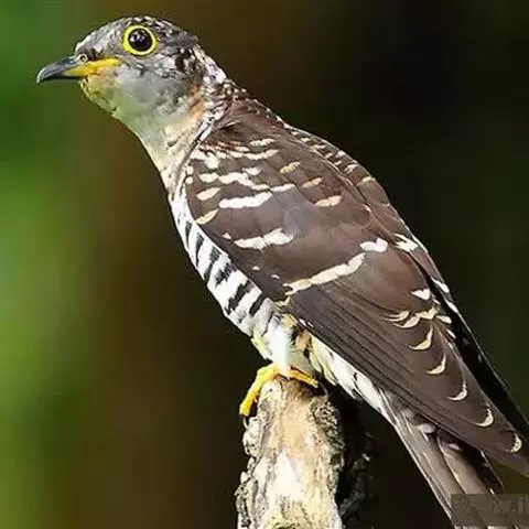 四声杜鹃(学名:Cuculus micropterus):是中型鸟类,体长31-34厘米。头顶和后颈暗灰色;头侧浅灰,眼先、颏、喉和上胸等色更浅 ;上体余部和两翅表面深褐色 ;尾与背同色,但近端处具一道宽黑斑。下体自下胸以后均白,杂以黑色横斑;翅形尖长;尾具宽阔的近端黑斑,翅缘白而无斑;下体横斑较粗,达3-4毫米宽,且较疏,斑距超过5 毫米。