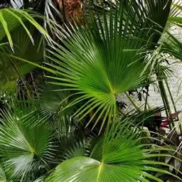 蒲葵 R. Br. ex Mart.),棕榈科蒲葵属木本植物。叶为扇形,两面均为绿色,…