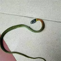 红脖颈槽蛇:游蛇科、颈槽蛇属的爬行动物。体型中等大小,全长约77-95厘米。头背草绿色,上唇鳞色稍浅,…