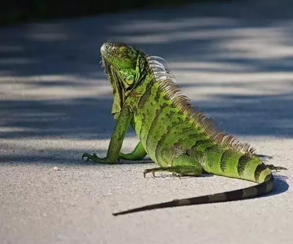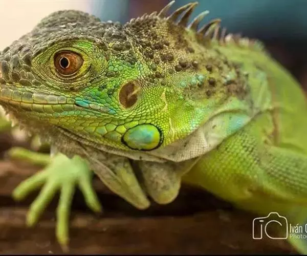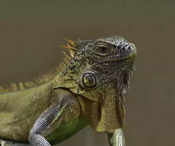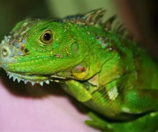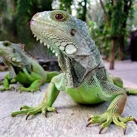 绿鬣蜥(学名:Iguana iguana)是美洲鬣蜥科、美洲鬣蜥属爬行动物。绿鬣蜥是鬣蜥种类中体型最大的,由于被广泛饲养,所以成为最有人气的鬣蜥种类。 刚孵化的绿鬣蜥的长度从17-25厘米不等。大多数成年绿鬣蜥体重在4-6千克之间,但在南美洲,如果饮食适当,体重可以达到8千克。绿鬣蜥的头到尾长度可达2米左右。颜色是可变的。随着年龄的增长,成年绿鬣蜥的颜色会变得更加均匀,而幼年绿鬣蜥的颜色可能会出现斑点或在绿色和棕色之间出现条纹。绿鬣蜥的其他显着特征包括喉咙下的颈下垂皮,由从中颈到尾巴基部延伸的真皮刺组成的背顶,以及长长的逐渐变细的尾巴。成年雄性比雌性的颈下垂皮更发达。侧边的眼睛主要由不动的眼睑和自由活动的下眼睑保护。在眼睛后面的头骨的背中线是顶眼。头部的鳞片比身体其他部位的鳞片更大,更不规则。在鼓膜下方有一个巨大的圆形鳞片,称为鼓室下板。