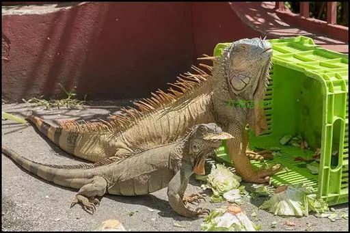 幼体时,最好把菜叶或食物切成小块投喂,便于绿鬣蜥食用。绿鬣蜥的食物种类有很多,且需要补充的营养物质也有很多,所以食物需要多样化。可选用油麦菜、芜菁甘蓝、芥菜、芹菜蒲公英、青豆角、青椒、韭菜、雪豆、葡萄、 萝卜、梨、紫橄榄等。每周食物中最好添加一次钙粉和维生素粉,每次用量最好为绿鬣蜥眼球大小的2-3倍。
