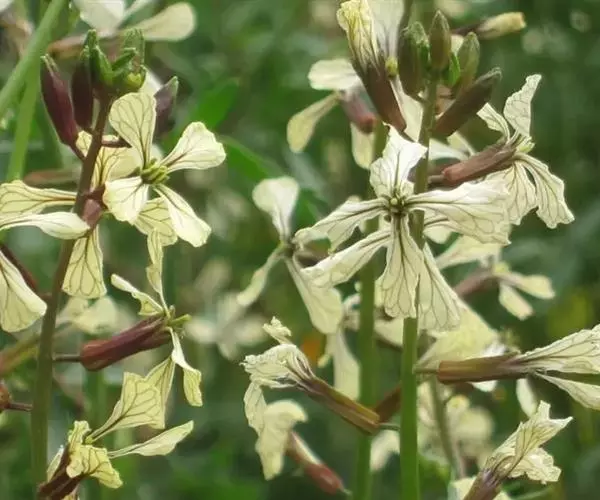 绵果芝麻菜(变种)长角果有白色反曲的绵毛或乳突状腺毛。