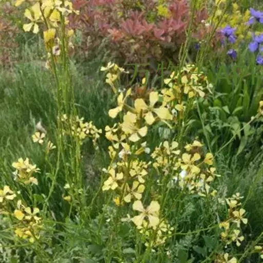 芝麻菜(学名:Eruca sativa Mill.)是十字花科,芝麻菜属一年生草本植物,高可达90厘米;茎直立,叶片羽状分裂或不裂,顶裂片近圆形或短卵形,有细齿,侧裂片卵形或三角状卵形,上部叶无柄,总状花序有多数疏生花;花梗长柔毛;萼片长圆形,棕紫色,花瓣黄变白,有紫纹,短倒卵形,果瓣无毛,种子棕色,有棱角。5-6月开花,7-8月结果。