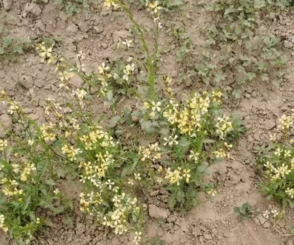 长角果圆柱形,长2-3厘米,果瓣无毛,有1隆起中脉,喙剑形,扁平,长5-9毫米,顶端尖,有5纵脉;果梗长2-3毫米;种子近球形或卵形,直径1.5-2毫米,棕色,有棱角。花期5-6月,果期7-8月。