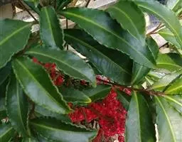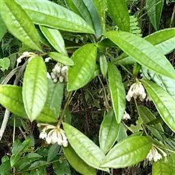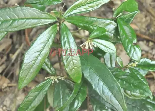 山血丹 灌木或小灌木,高1-2米;茎幼时被细微柔毛,无皱纹,除侧生特殊花枝外,无分枝。叶片革质或近坚纸质,长圆形至椭圆状披针形,顶端急尖或渐尖,稀钝,基部楔形,长10-15厘米,宽2-3.5厘米,近全缘或具微波状 齿,齿尖具边缘腺点,边缘反卷,叶面无毛,中、侧脉微隆起,背面被细微柔毛,脉隆起,除边缘外其余无腺点或腺点极疏,侧脉8-12对,连成远离边缘的边缘腺;叶柄长1-1.5厘米,被微柔毛。