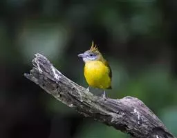金冠树八哥为椋鸟科树八哥属的鸟类。体长约23厘米,闪辉黑色。特征为具翼斑及颏黄色,脸颊裸露皮肤粉黄色。…