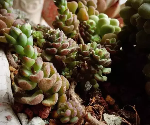 叶片微被细毛,在日照时间长且具一定温差的环境下会呈现粉色。