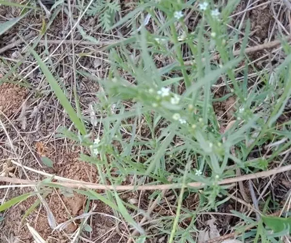 全草多分枝,长20-40cm。根圆锥形,直径1-4mm;表面棕黄色,有纵皱纹,具细支根。茎丛生,纤细,长12-30cm,暗黄绿色,具纵棱;质脆,易折断,断面中空。叶互生,线状披针形,长1-3cm,宽0.5-15mm,灰绿色。