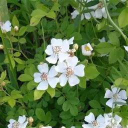 白蔷薇:直立灌木,高约2米;小枝有不等钩状皮刺,有时混有刺毛。小叶通常5,稀7,宽椭圆形或卵形,…
