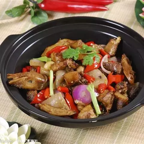 鸭脚煲是以鸭为主料的菜品。