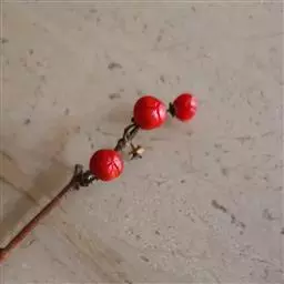 果实卵形,直径2-2.5厘米,红色,先端渐尖,稍具隆起,萼洼微突,萼片宿存肥厚,果梗细长。花期4-5月,果期8-9月。