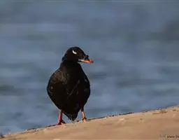 虹膜雄鸟红色,雌鸟红褐色,嘴深红色。嘴峰和嘴甲黑色,跗跖红色。