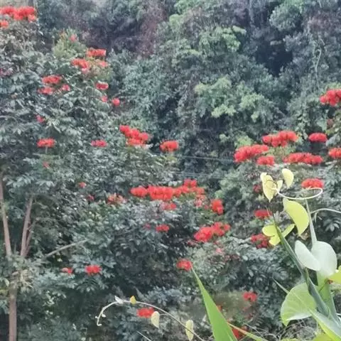 火焰木,又名苞萼木、喷泉树,为紫葳科常绿大乔木,株高10—20米,叶为奇数羽状复叶,对生,较大,斜…