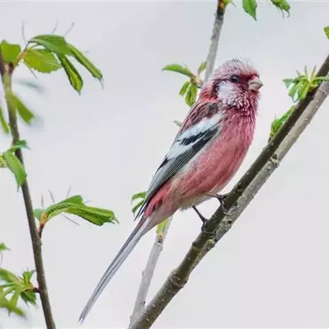 北朱雀,是燕雀科朱雀属鸟类。雄鸟额和头顶前部珠白色具窄的粉红色羽缘,…