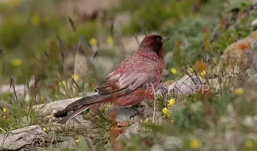 藏朱雀:全长约17-18厘米。雄鸟头部深红色具光辉,喉部暗红色具白色点斑;背部灰白色,各羽具玫瑰红…