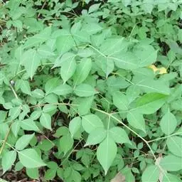 乔木,高可达15 米。羽状三出复叶对生,小叶片椭圆形或倒卵状椭圆形,长6~10 厘米,宽3~5 厘米,先端短渐尖,基部楔形或宽楔形,稀近圆形,边缘具细锯齿。圆锥花序叶腋生,花白色。蒴果梨形或椭圆形膨大,先端3 浅裂。