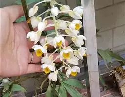 束花石斛是兰科石斛属植物。茎粗厚,肉质,下垂或弯垂,圆柱形,不分枝,具多节。叶二列,互生于整个茎上,…