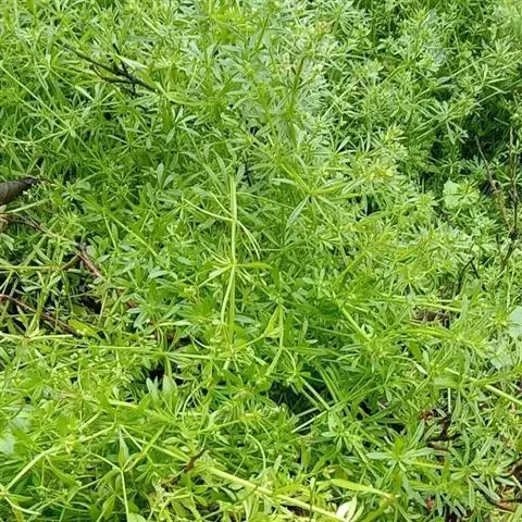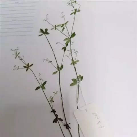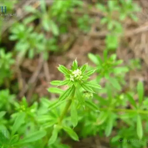 六叶葎 Ehrend. & Schönb.-Tem. ex R. R. Mill)是茜草科拉拉藤属的一年生草本。常直立,有时披散状,高10-60厘米左右,近基部分枝,有红色丝状的根;茎直立,具疏短毛或无毛;叶片薄,纸质或膜质,长圆状倒卵形、倒披针形、卵形或椭圆形顶端钝圆而具凸尖;聚伞花序顶生和生于上部叶腋,苞片常成对披针形,花冠白色或黄绿色,裂片卵形,雄蕊伸出;果近球形,单生或双生,密被钩毛;花期4-8月;果期5-9月。六叶葎分布于中国北、山西、陕西、甘肃、江苏、安徽、浙江、江西、河南、湖北等地,印度、巴基斯坦、尼泊尔、锡金、不丹、缅甸、日本、朝鲜、俄罗斯均有栽培。生于海拔920-3800米的山坡、沟边、河滩、草地的草丛或灌丛中及林下。六叶葎味甘,性平,具有清热解毒、利尿消肿的功效,可用于治疗尿路感染、赤白带下、痢疾、痛肿、跌打