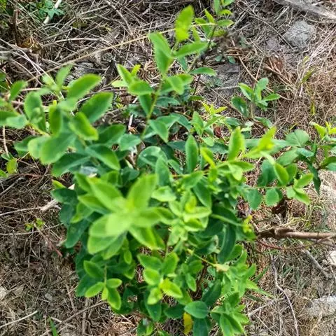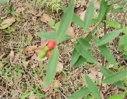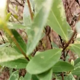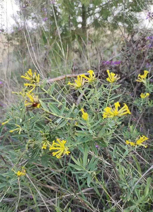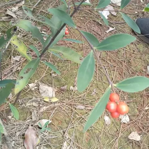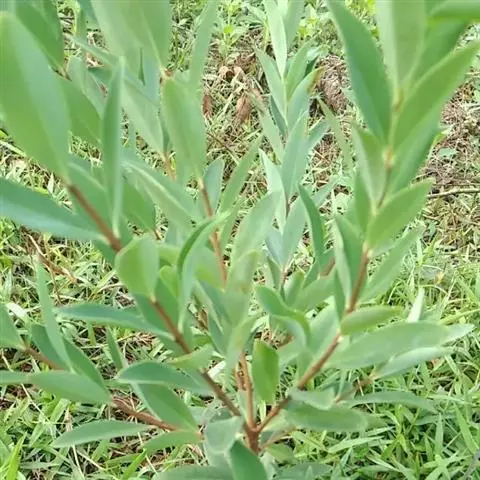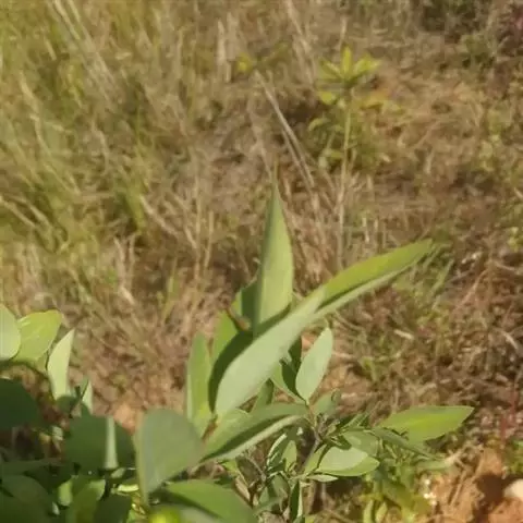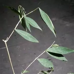 灌木,高约1米,分枝多而纤细,无毛;幼枝近四棱形,绿色,后变为褐色。叶对生,无毛,近革质,披针形,长2.5-5.5厘米,宽0.2-1厘米,先端尖,基部楔形,上面绿色,干后稍皱缩,下面灰绿色,光滑,侧脉每边7-8条,不明显;叶柄极短,近于无。
