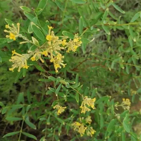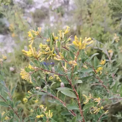 花黄色,花序穗状或由穗状花序组成的圆锥花序,顶生或腋生,密被灰色短柔毛;花梗极短,具关节,花后残留;花萼长约8-10毫米,外面被灰色绢状短柔毛,裂片4,2大2小,卵形至长圆形,端圆,约等于花萼长的1/3;雄蕊8,2列,着生于花萼筒的中部以上;花药长圆形,长约1毫米,花丝短,近于无;子房棒状,具柄,顶部被短柔毛,花柱短,柱头圆珠形,顶基稍压扁,具乳突;花盘鳞片1枚,线状披针形,端钝,约长0.8毫米。果卵形,干燥。花期6-8月,果期9月。