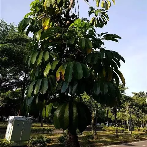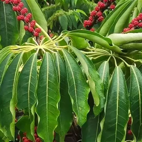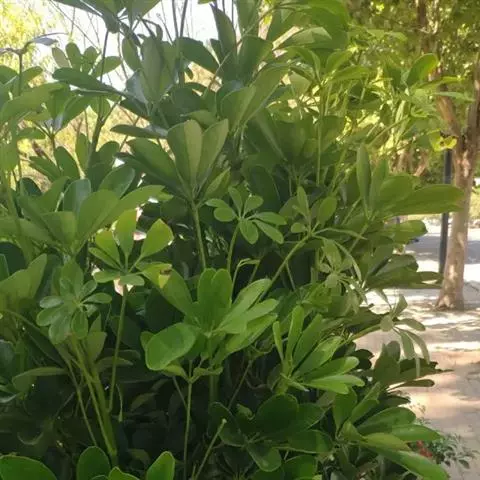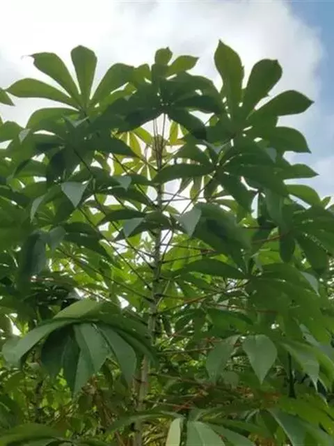 昆士兰伞木,吕松鹅掌柴 ,称昆石兰遮树,澳洲鸭脚木、方式叶鹅掌柴、伞树、大叶伞。叶片阔大,柔软下…