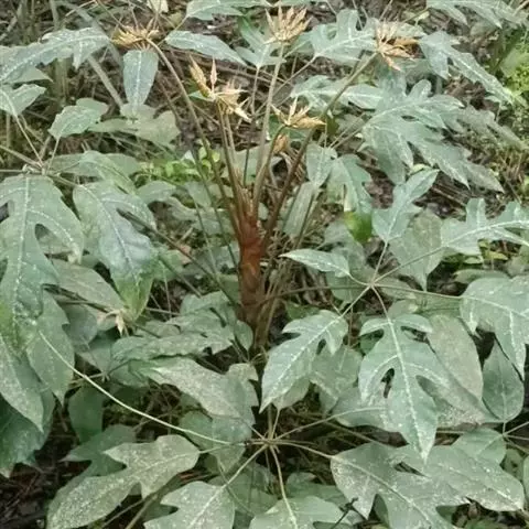 鹅掌藤,五加科,鹅掌柴属藤状灌木,叶柄纤细,圆锥花序顶生,花白色,花期7月,果实卵形果期8月。…
