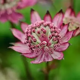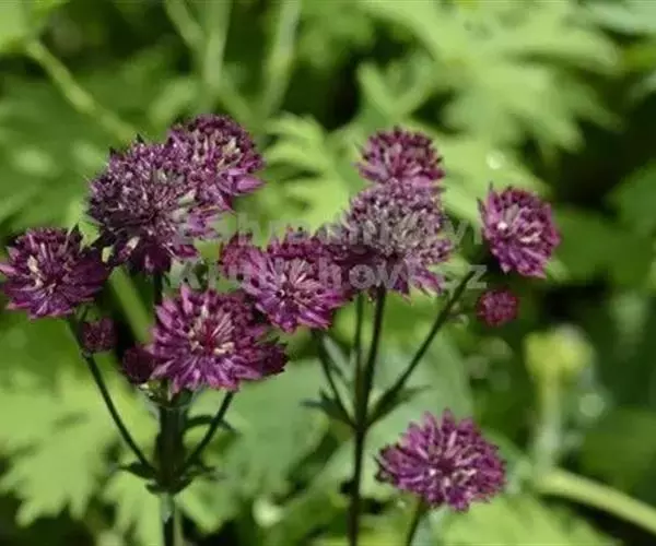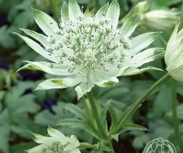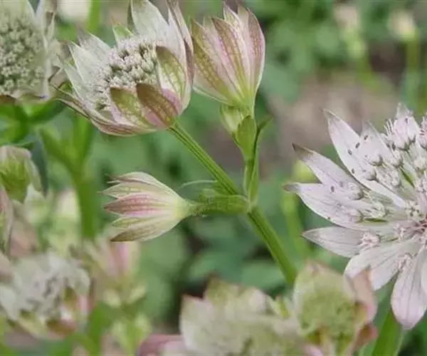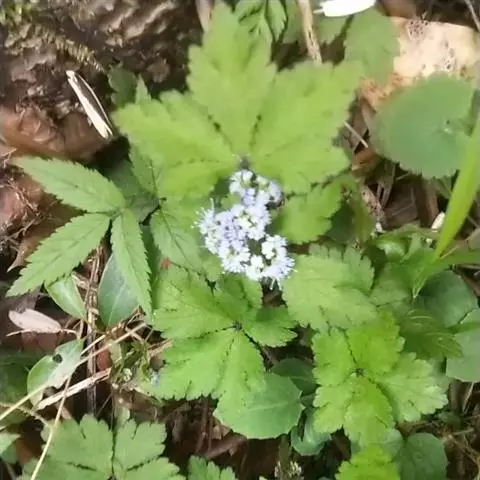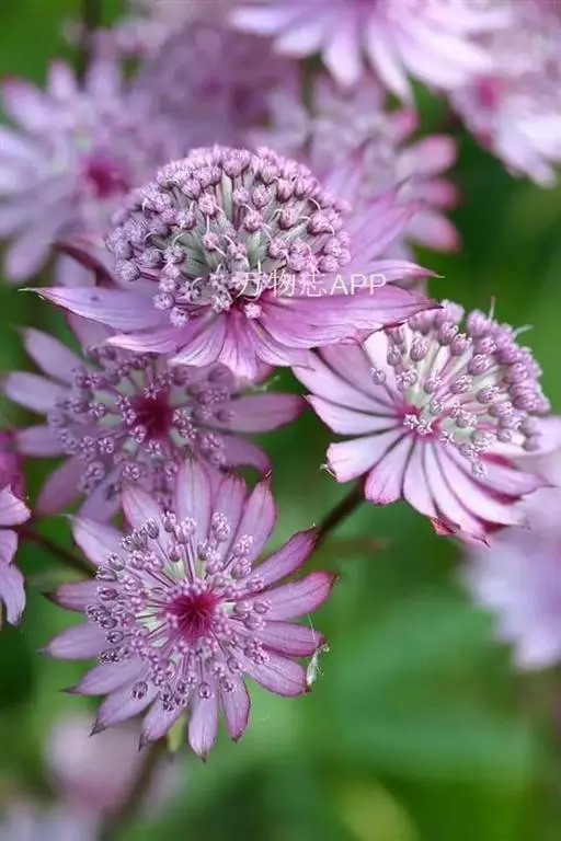 大星芹,Astrantia major,伞形科星芹属的一种多年生草本,株高60-90cm,多分枝丛状,叶大部基生,有长柄,叶片5掌状深齿裂;茎生叶少,3-5深裂,叶柄宽大而抱茎。复伞形花序。