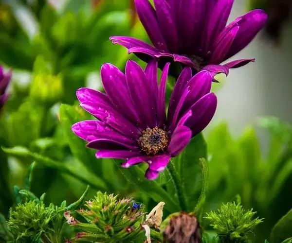苞片12-20枚,紫色。花杂性,可孕花花梗短,不孕花花梗长。花小,粉红色,玫瑰色或白色。花萼裂片具针状尖。双悬果倒卵状圆柱形,有棱。