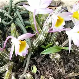 玫瑰石斛是兰科石斛属的多年生附生草本植物。茎斜下或下垂,青绿色,圆柱形,…