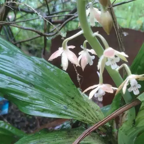 大花盆距兰 Kuntze):茎粗壮,长2-5厘米,节间长约1厘米。叶大,带状或长圆形。伞形花序侧生…