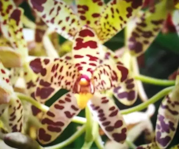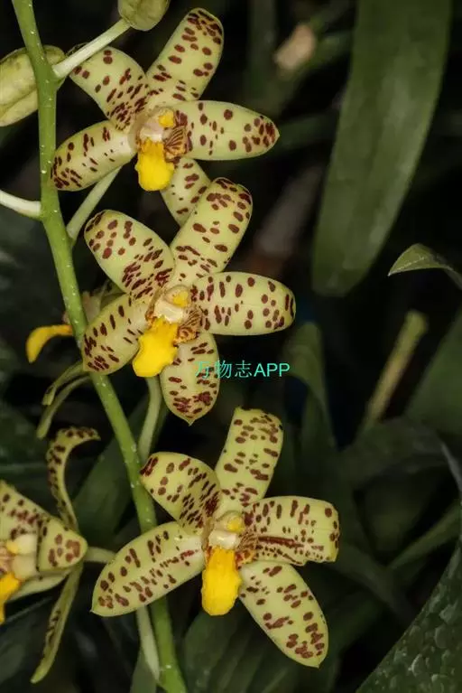 麒麟火焰兰,兰科火焰兰属附生或半附生草本,园艺种。叶二列,彼此紧靠,革质,宽披针形。总状花序腋生,…