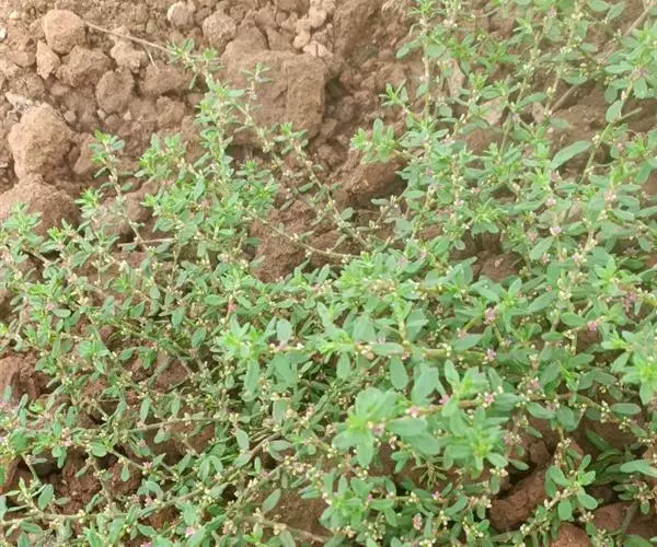 花3-6朵,簇生于叶腋,遍布于全植株;苞片膜质;花梗中部具关节,比苞片短;花被5深裂;花被片长椭圆形,绿色,背部稍隆起,边缘白色或淡红色,长1-1.5毫米;雄蕊5,花丝基部稍扩展,比花被短;花柱3,稀2,极短,柱头头状。