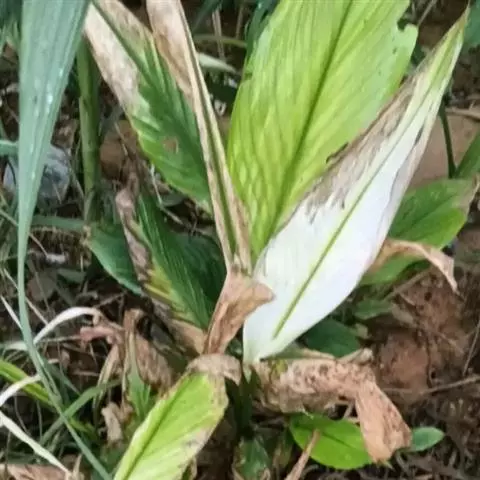 广西莪术含挥发油,具有较强的抗真菌活性,对植物病原真菌孢子萌发和菌丝生长均有显著的抑制作用,因此病害较少。但当群体生长不良或环境条件适于病菌繁殖时,亦能产生某些病害。危害最大的就是烂苓,其病原菌及发生规律不明,田间在9月开始出现,症状类似姜瘟却无腐臭味,连作地块发病尤其严重。药农曾试用各种药剂防治,但效果均不显著。烂苓仍是破解不了的难题,已成为广西莪术连作障碍的主因。此外,叶斑病的危害也较大。叶斑病的病原菌为大豆拟茎点种腐病菌;病原菌一般先侵染嫩叶,初时叶尖或叶缘处出现黄色水渍状斑点,之后病斑向中脉扩展,形成边缘褐色,中间暗褐色并凹陷的“V”形大病斑,后期叶片枯黄、植株死亡;生长盛期和高温期的7-8月为高发期;发病初期,可选用多菌灵、代森锰锌、托布津等药剂防治。
