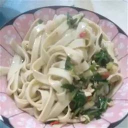 鸡蛋面是中国的传统面食小吃之一,属于家常菜,该菜品通过鸡蛋和面粉的混合而做出,其面质柔滑,在中国传统小吃中用的非常广泛。鸡蛋面清香扑鼻,需要原料少,需要器具少,清淡可口,柔中有韧,有鸡蛋的香味还有小麦的醇香,营养丰富,物美价廉。