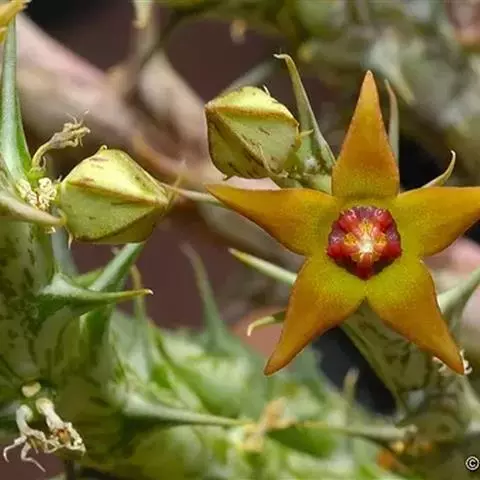 大花犀角是夹竹桃科犀角属的多年生肉质草本植物,茎基部分枝,有齿状突起,灰绿色,形如犀牛角,花大,…