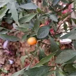 浆果黄色,光滑无毛,圆球形,直径约1-1.5cm,宿萼外面被稀疏的星状毛,果柄长约1.5cm,上部膨大;种子盘状,直径约1.5-2mm。全年均开花结果。