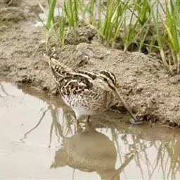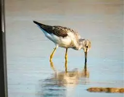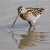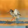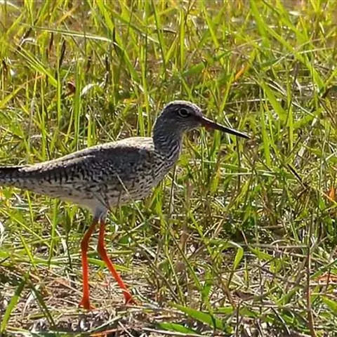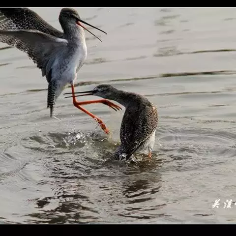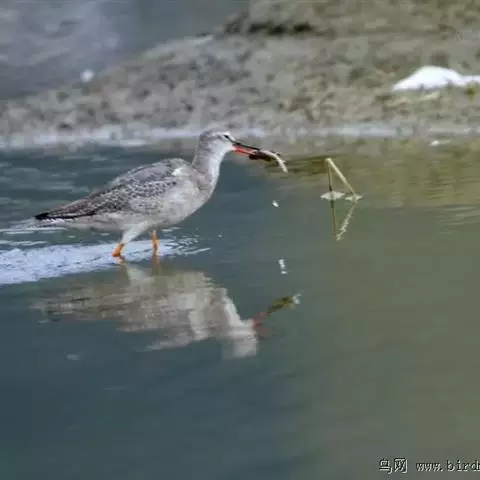 红脚鹬:体长28厘米,上体褐灰,下体白色,胸具褐色纵纹。飞行时腰部白色明显,次级飞羽具明显白色外缘。…