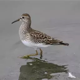 斑胸滨鹬小中型涉禽;体长23厘米,翼展37-45厘米,体重126克。嘴形直,…